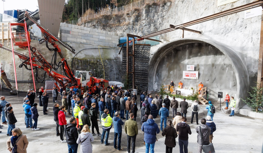 Seit 2. Dezember 2022 wurde der Erkundungsstollen Tisis ins Gestein getrieben. Nach weniger als einem Jahr Bauzeit erfolgte am 16. November 2023 der letzte Abschlag. Der Bau des 1200 langen Tunnels ist damit abgeschlossen