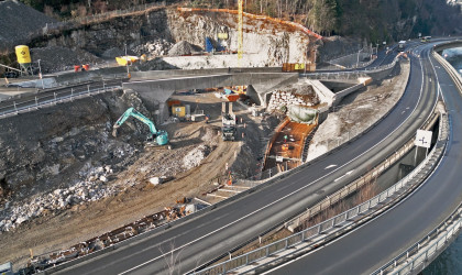 In der Felsenau wird an der Radwegüberführung weiter gebaut und im Erkundungsstollen Tisis müssen noch Restarbeiten durchgeführt werden. Die Bauausschreibung des Haupttunnels hat begonnen