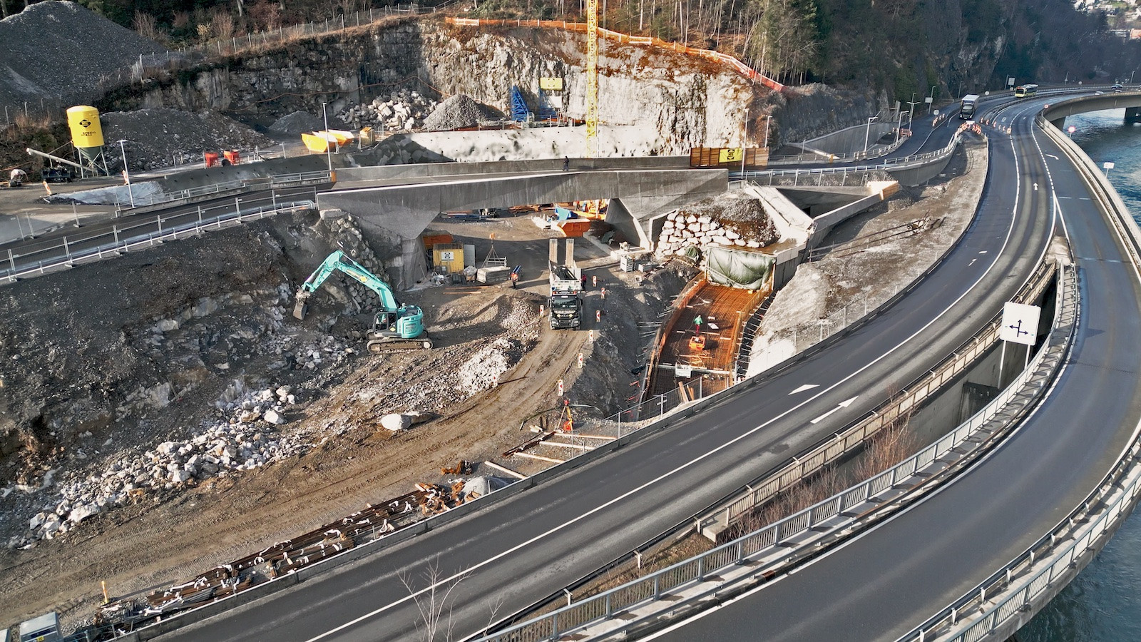 Am 16. November 2023 wurde im Erkundungsstollen Tisis zum letzten Mal gesprengt. In den kommenden zwei bis drei Monaten sind hier noch Restarbeiten durchzuführen, dazu gehören der Leitungsbau, Arbeiten am Entwässerungssystem, der Bau der Stollenfahrbahn sowie das Räumen der Baustelle.