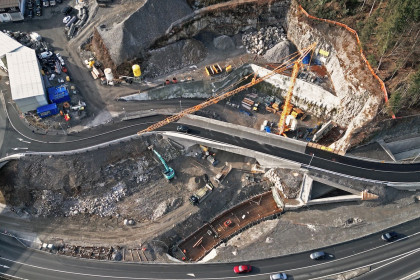 Im vergangenen Dezember wurde die neue Rampenbrücke, die Auffahrt zur Göfner Brücke und Felsenauer Straße, fertiggestellt und dem Verkehr übergeben. Über diese Brücke führt auch ein kombinierter Geh- und Radweg. Ebenfalls noch vor Weihnachten wurde die erste Hälfte der Radwegunterführung gebaut. Voraussichtlich Ende Oktober 2024 wird auch die zweite Hälfte der Unterführung umgesetzt sein. Ebenso wird die gesamte Verkehrssituation in der Felsenau "tunnelfit" gemacht und auch die Landesstraße L190 an die künftige Portallage angepasst.