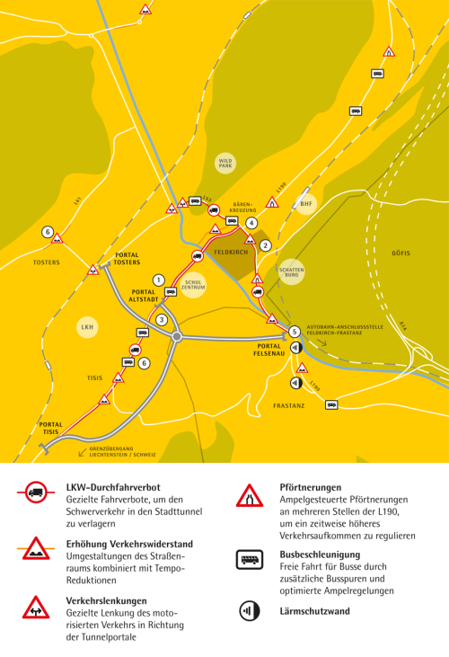 Übersicht über die begleitenden Maßnahmen zum Stadttunnel Feldkirch:
